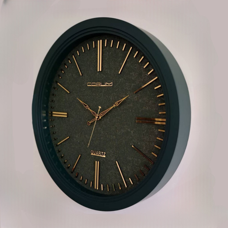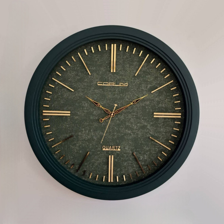 قطر 60 سانت رنگ سبز عقربه طلایی دارای موتور ارام گرد بدون کوچکترین صدا جنس بدنه کاغذ دیواری کیفیت عالی تضمینی✔️
