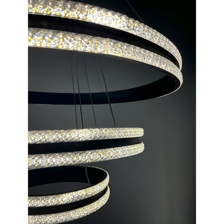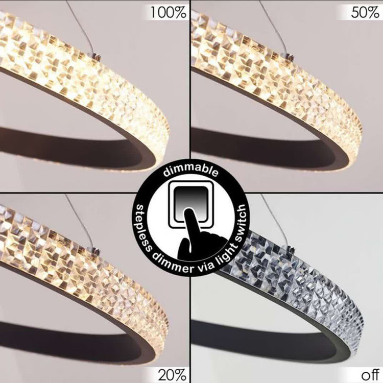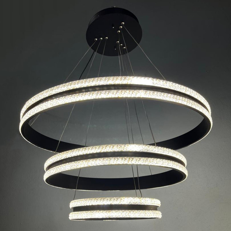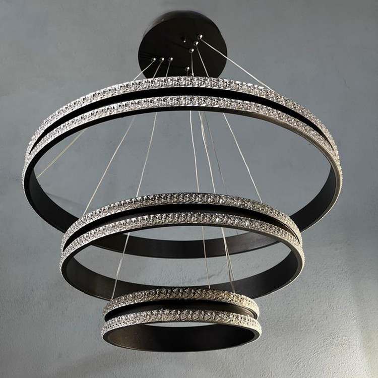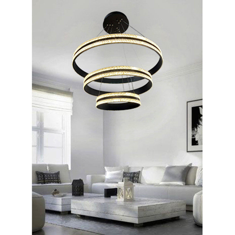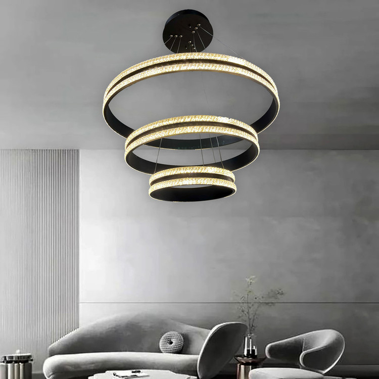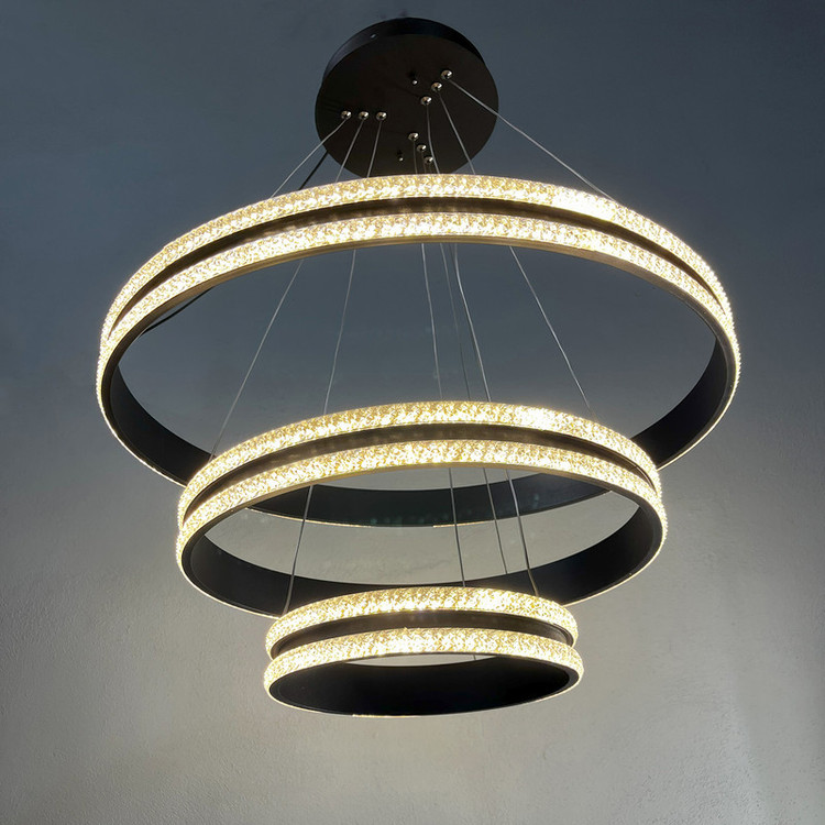 لوستر آویز مدل مدرن دایره ای سه لاین با قطرهای 60/40/20سانتی متر دارای روکش کریستال توسط سیم آویز به ارتفاع حدود 80 سانتی متر مهار شده است و قابلیت تنظیم ارتفاع، فرم و چیدمان دارد این آویز سه حلقه شامل سه نور مهتابی ، آفتابی و نچرال میباشد که با ریموت کنترل و اپلیکیشن تلفن همراه قابل تغییر میباشد و همچنین دارای چهار رنگ بدنه سفید ، مشکی ، طوسی و طلایی میباشد که در قسمت تنوع کالا قابل انتخاب میباشد. مناسب انواع فضاهای مسکونی ، اداری و تجاری میباشد و همچنین مناسب برای روی کانتر ، میز غذاخوری و سایر موارد دیگه میباشد.