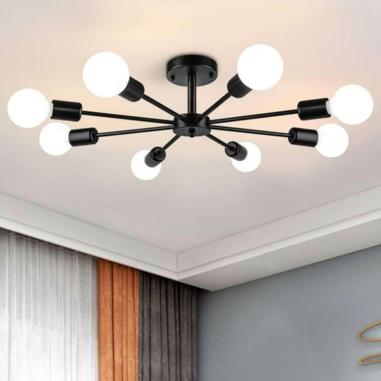 لوستر سقفی هشت شعله مناسب پذیرایی آشپزخانه اتاق خواب جزو لوستر های مدرن و خاص بوده سرپیچ این کار معمولی از نوع e27 بوده ومحدودیت لامپی ندارید