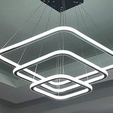 لوستر مدرن مدل مربع سه طبقه تولید شده توسط لوستر اکبری به اضلاع 60/40/20 سانت دو طرف نور و با قابلیت تنظیم ارتفاع و چیدمان. این لوستر دارای سه حالت نور آفتابی ، مهتابی و نچرال میباشد که با ریموت کنترل قابل تغییر میباشد و همچنین دارای رنگ بدنه سفید ، مشکی ، میباشد